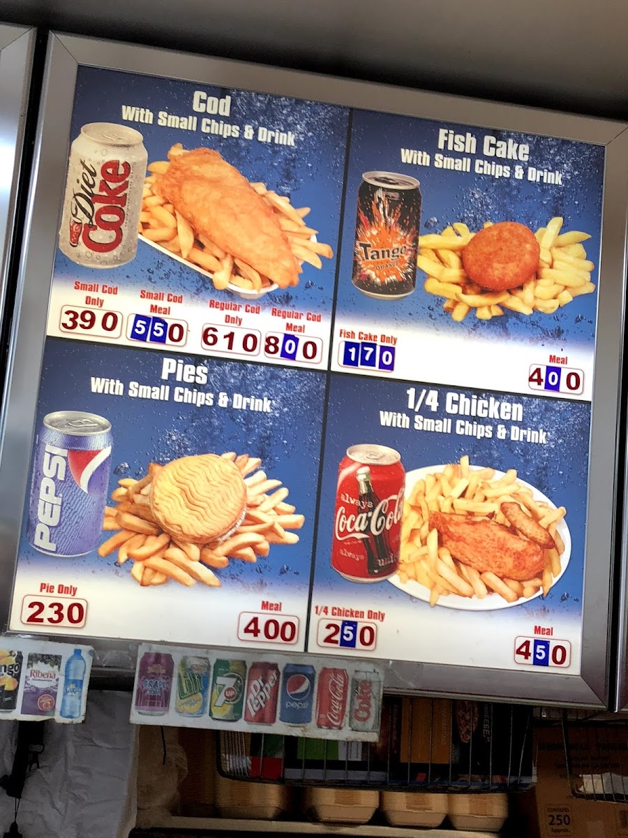 The menu at Diana Fish Bar offers a variety of delicious options catering to different tastes. For fish lovers, the choices include Cod Only, Large Cod, and Skinless Cod among others, with a range of prices. For those seeking lighter bites, there are starters such as Cod Roe, Fish Cakes, and Cheesy Chips. Chicken dishes also feature prominently, with options like 1pcs Chicken, 1pcs Chicken and Chips, and 3pcs Chicken. The pie selection includes hearty options like Steak and Kidney Pie, Minced Beef and Onion Pie, and Chicken and Mushroom Pie, while the Jamaican pattie and sausages add a unique touch. Jacket potatoes are another popular choice, offered in a variety of combinations, including Jacket Potatoes with Cheese and Jacket Potatoes with Chilli Con Carne. The kebab section provides Lamb Doner Kebab, Chicken Shawarma Kebab, and Lamb Shish Kebab, among others. There are also wraps like the Lamb Doner Wrap and Chicken Fillet Wrap, perfect for a quick meal. For burger fans, options range from Quarter Pounder Burger to Fried Chicken Burger, catering to different preferences. Vegetarians can enjoy dishes such as Falafel & Salad in Pitta or a Veggie Burger. The kids’ menu offers child-friendly meals like Kids Fish Cake Meal and Kids Chicken Nugget Meal. If you're after a deal, the Meal Deals provide a range of affordable combos, including options available from Monday to Thursday. To finish off, indulge in desserts such as Apple Pie, Strawberry Cheesecake, or Chocolate Fudge Cake, along with refreshing drinks like Coca Cola or 7up. Overall, the menu at Diana Fish Bar presents a satisfying mix of comfort food, with something for everyone.